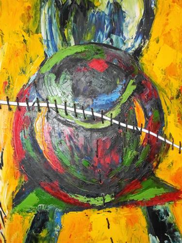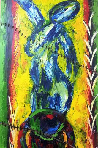 טכניקה: שמן על עץ - ושילוב חומרים ( חבלים)