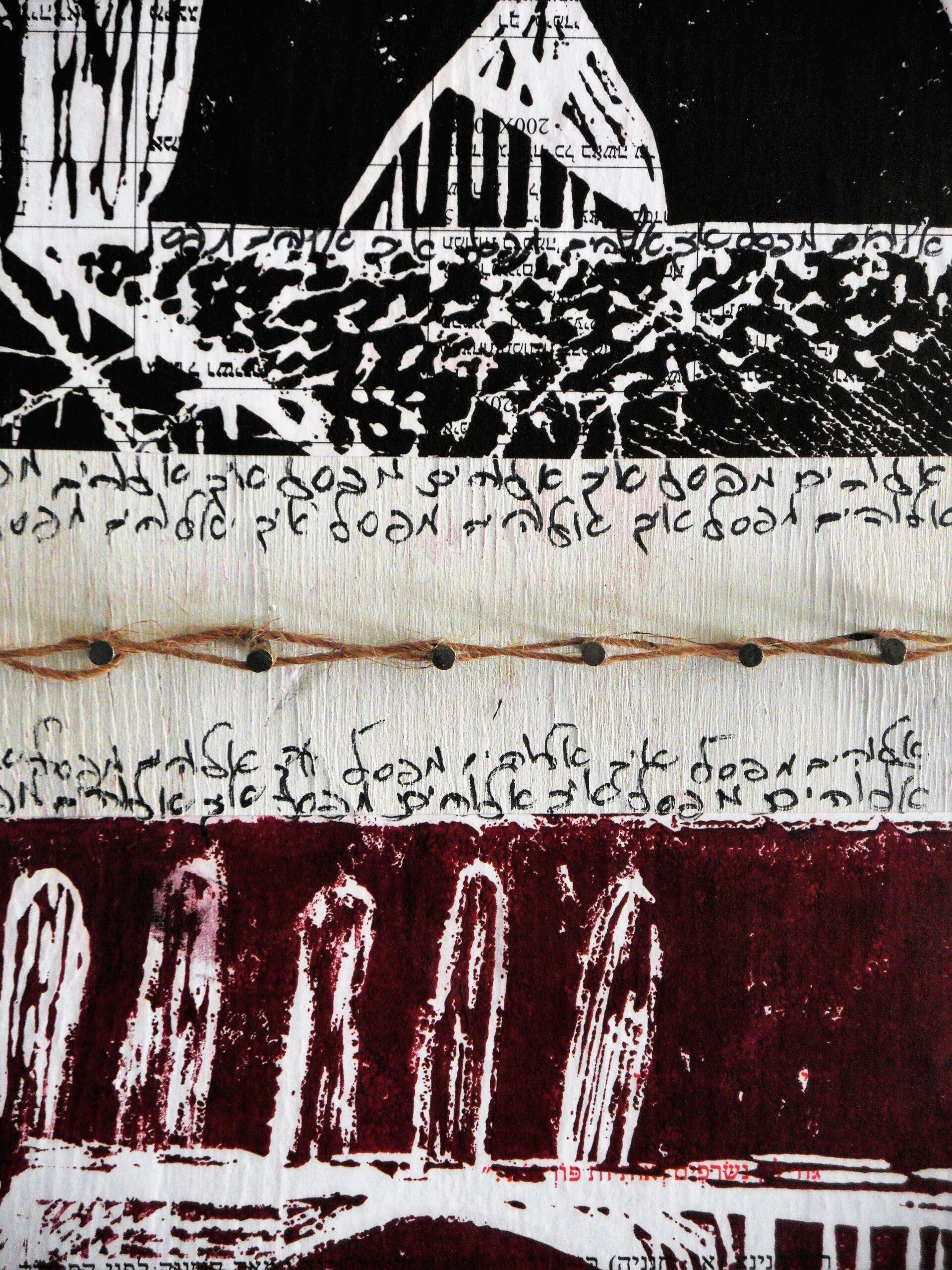 טכניקה מעורבת - הדפס - חיתוך לינואליאום ושילוב חומרים