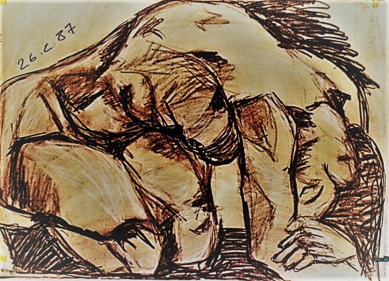 שם: רישום מודל, טכניקה: רישום בפחם, מידה: 100X70, תאריך: 1987