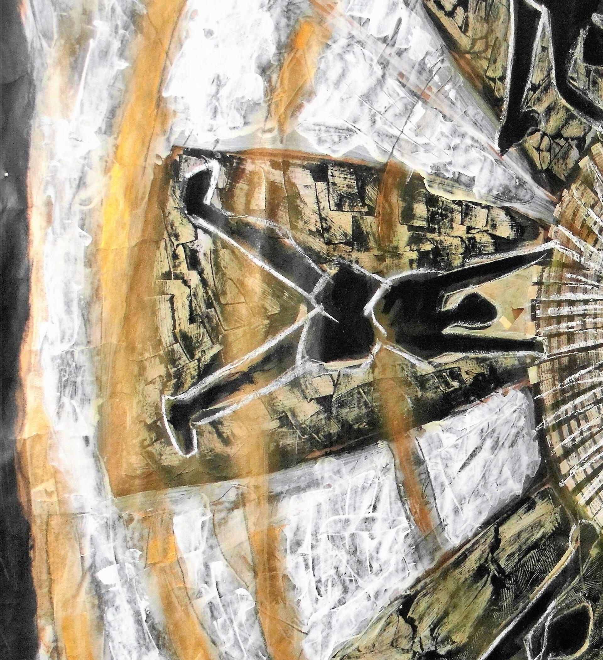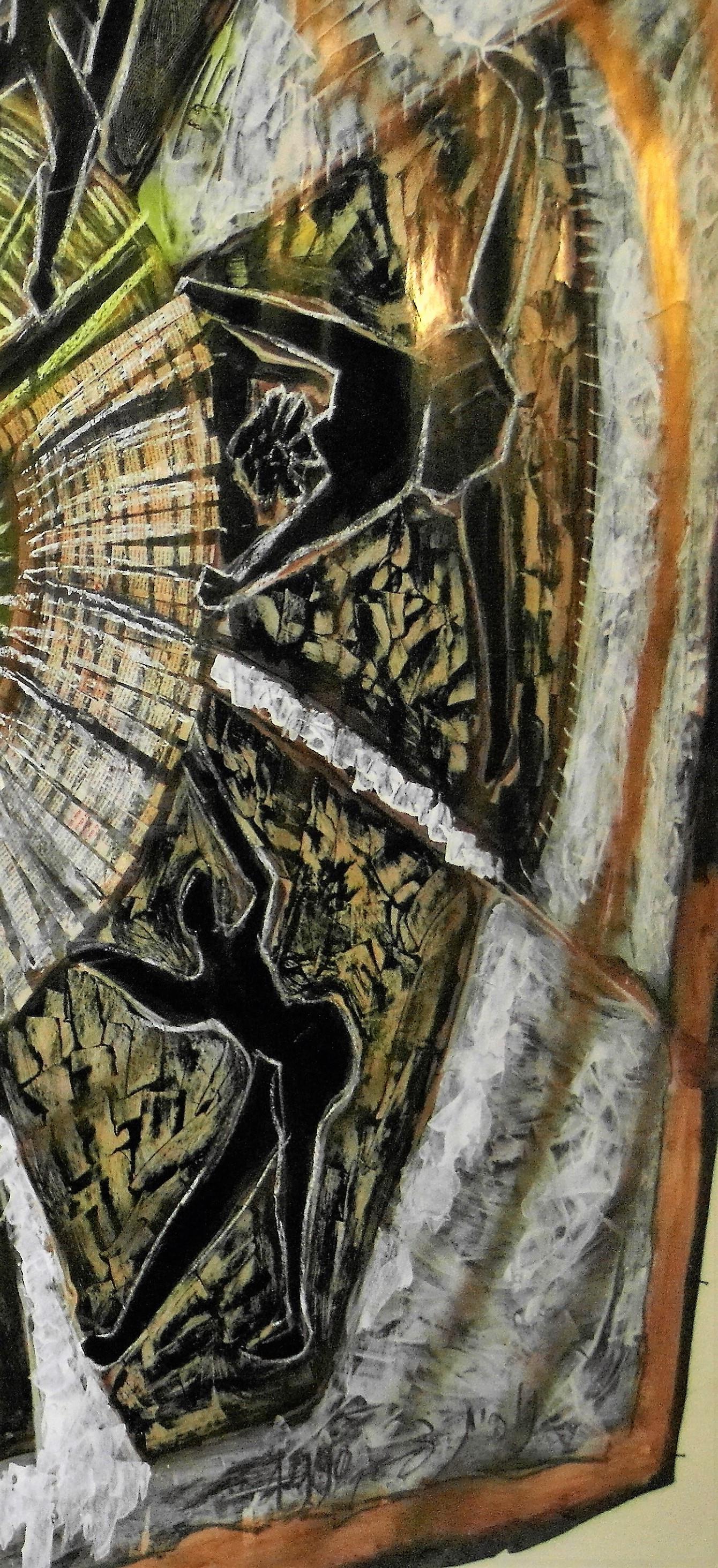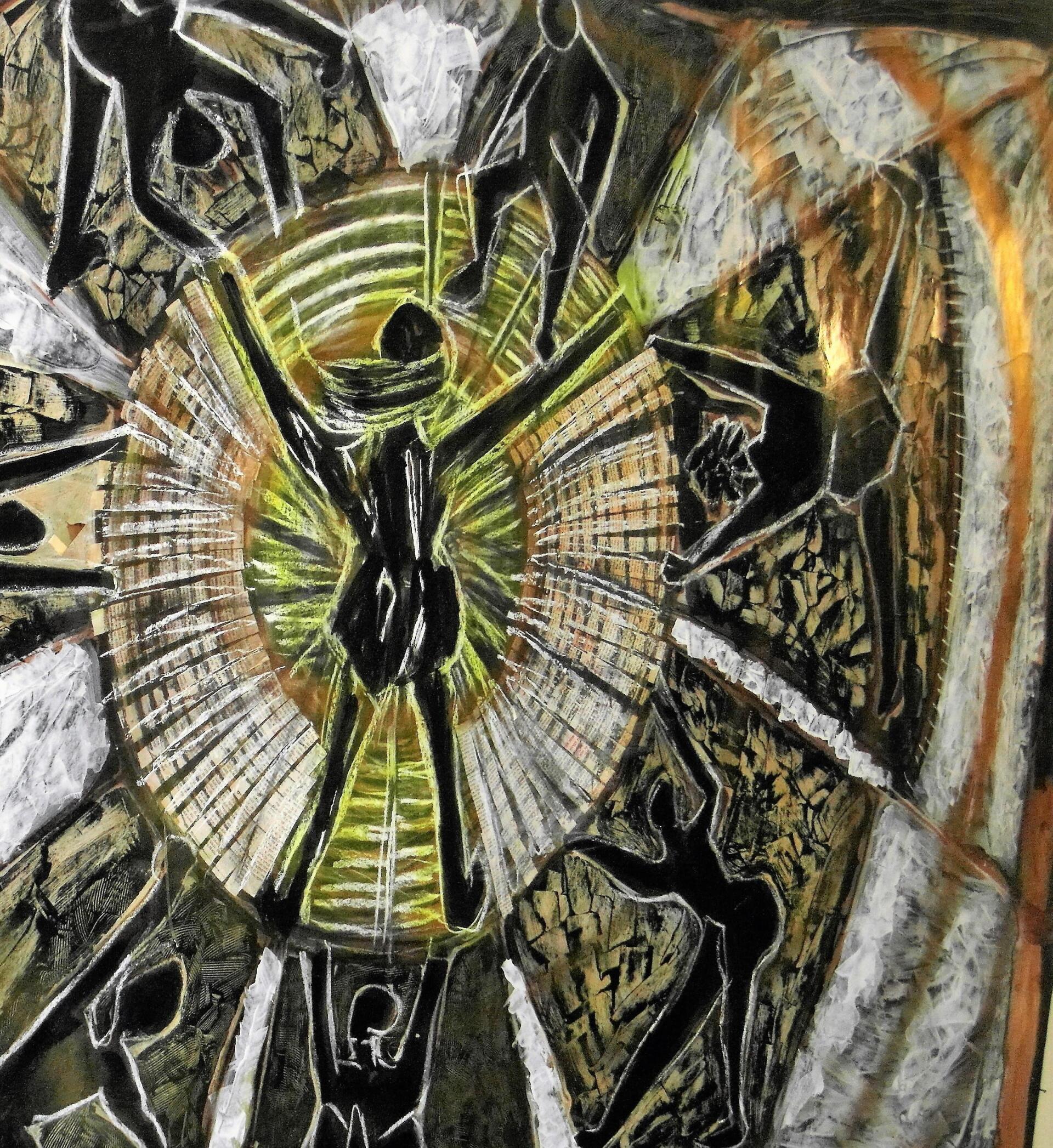 טכניקה מעורבת - אקריליק גירים ושמן תעשייתי על קרטון תעשייתי עבה