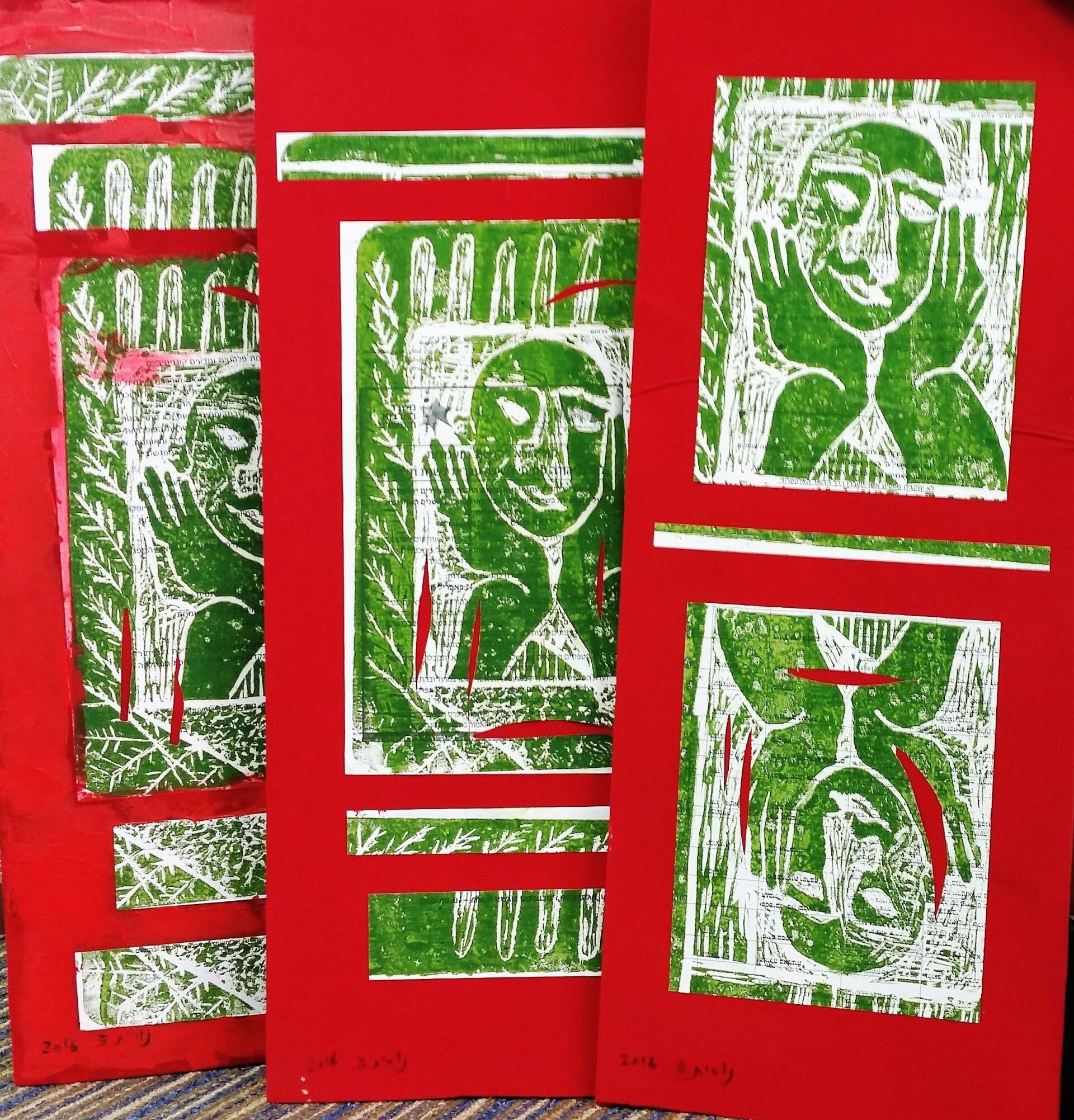 טכניקה: הדפס - חתוך לינוליאום על כתב
