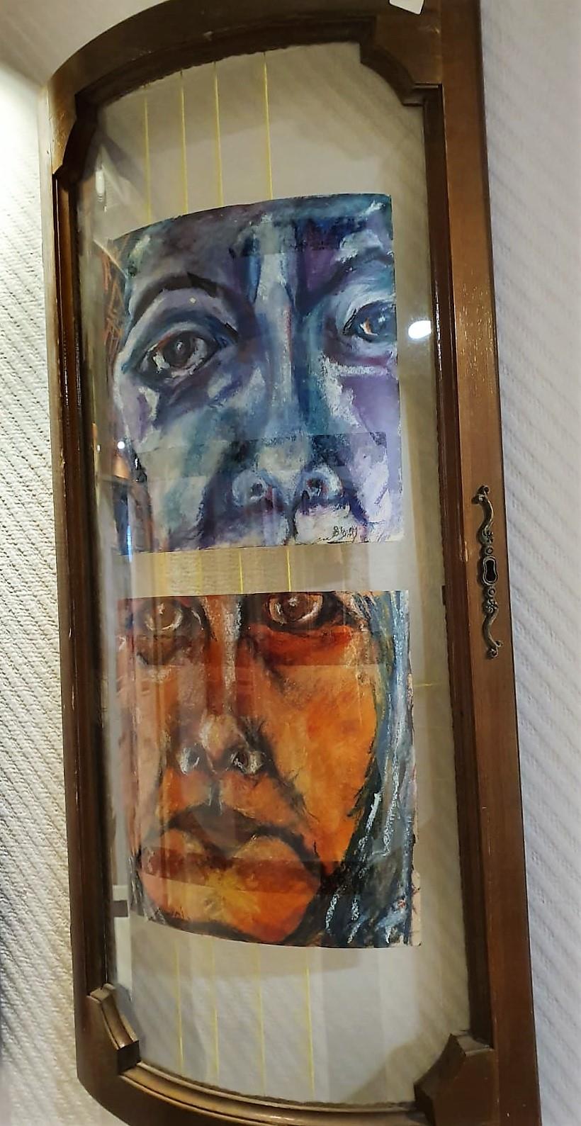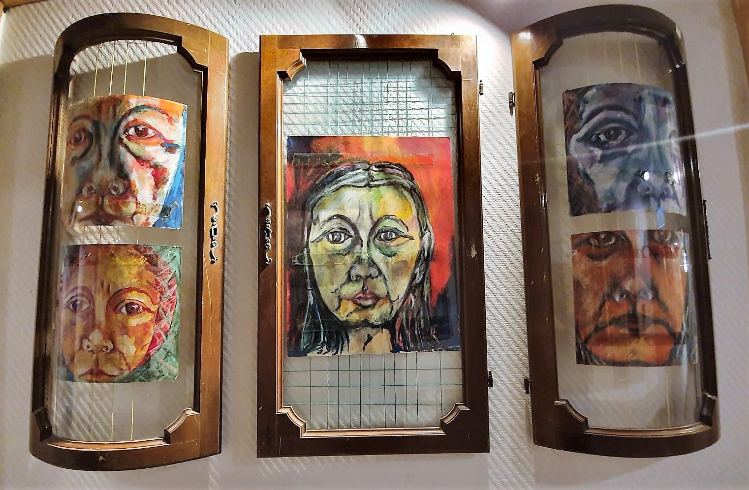 טכניקה: ציור באקריליק וגירים, שילוב רדי מייד ( חלונות), ועיבוד עם חוטים