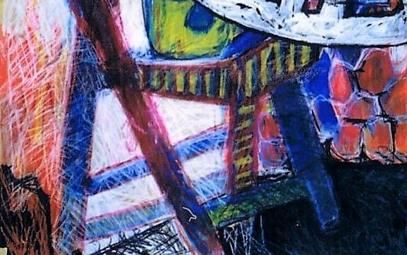 טכניקה מעורבת - גואש וגירים על נייר חום